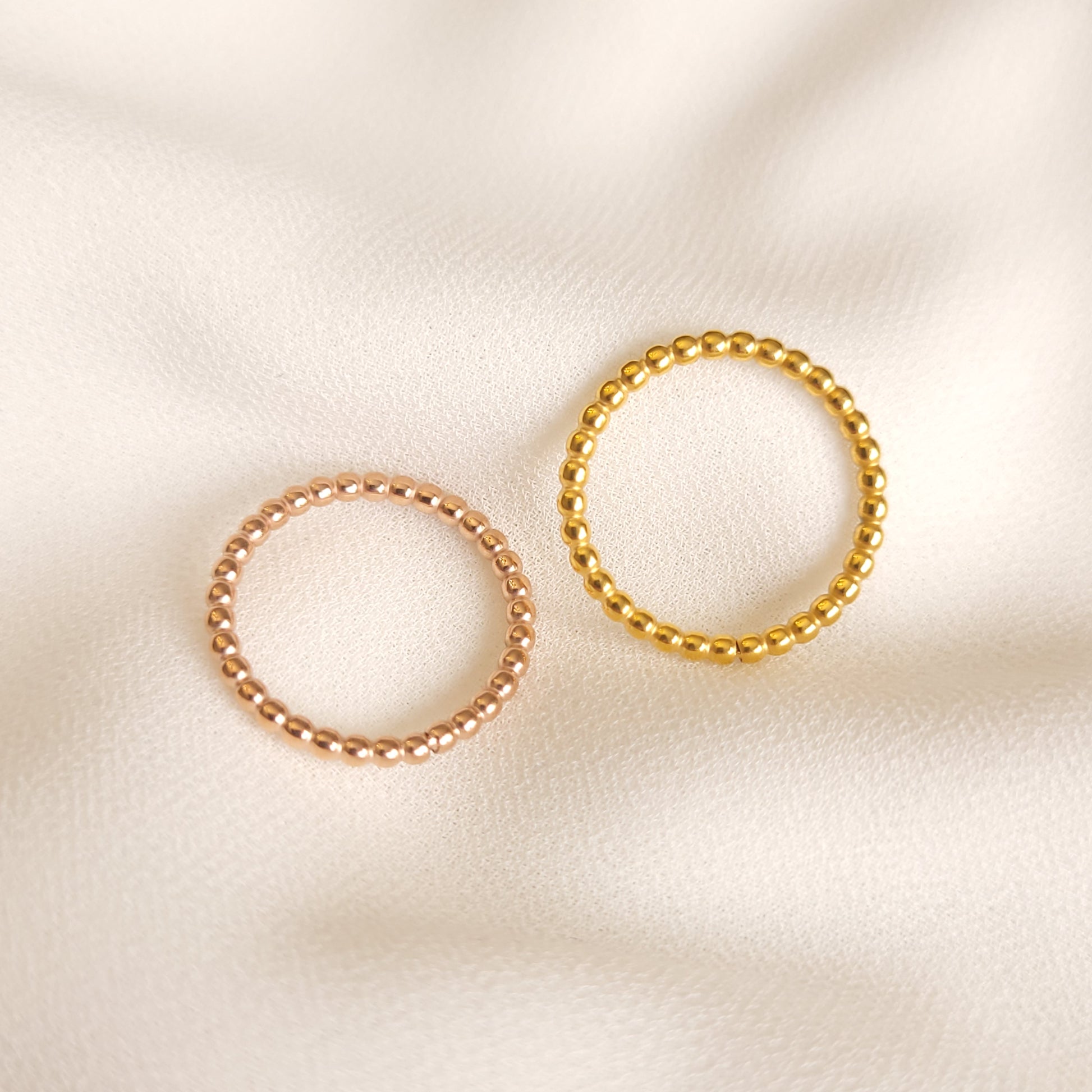An essential ring to help build your ring stack, this beaded simple look makes it easy to style with any and all rings. The smooth finishes gives it an elegant look.