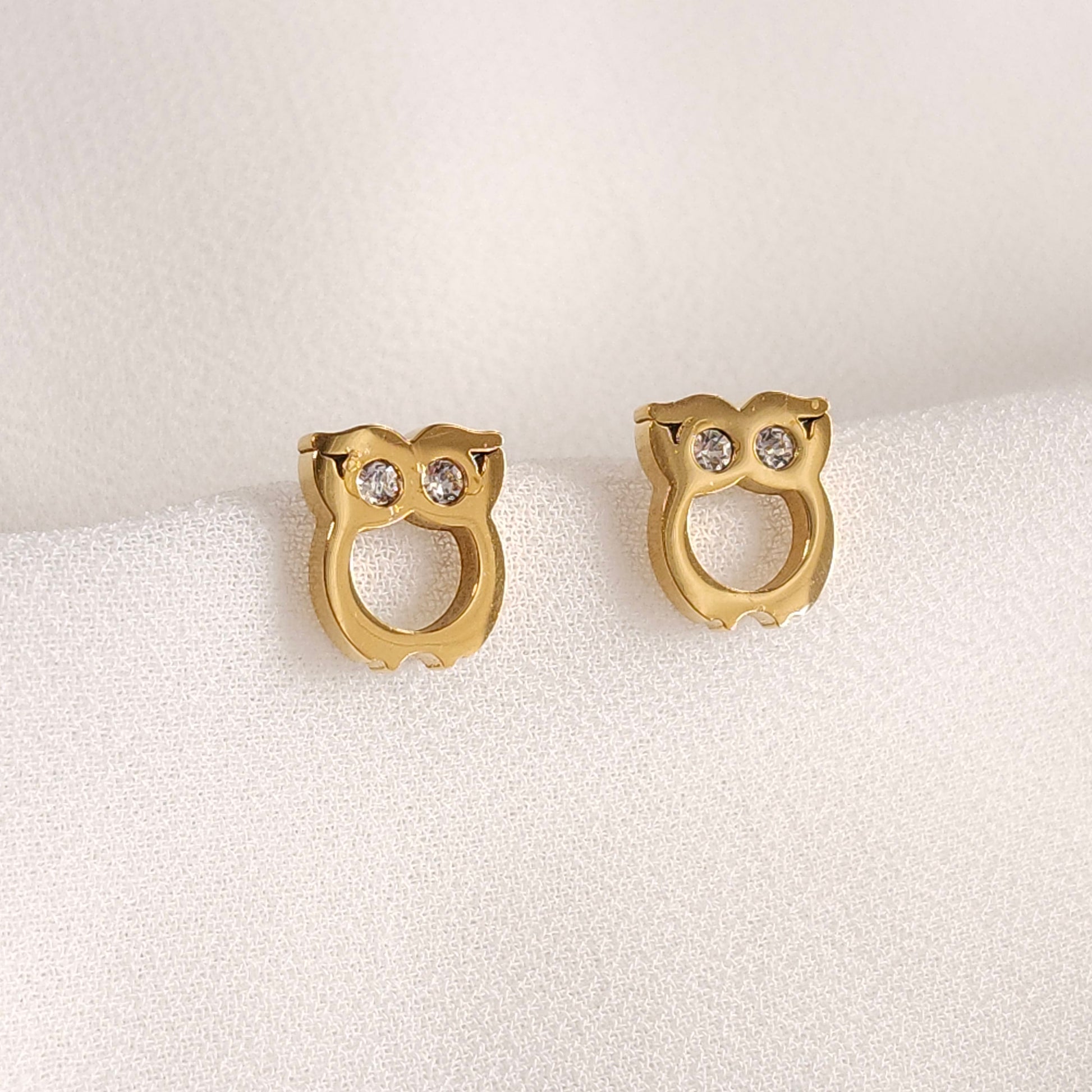 These owl stud earrings are the perfect blend of playful and polished. Made from gold-plated stainless steel, they feature a sleek design with sparkling crystal accents that catch the light effortlessly. Comfortable and lightweight, they’re ideal for all-day wear. A versatile staple that adds a refined touch to both casual and dressed-up looks.